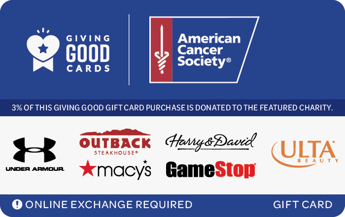 American Cancer Society Gift Card 3 Given Back Each Purchase Giftcardmall Com