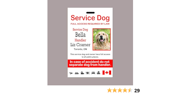 Service Dog Id Tag Id Card Personalized Service Dog Id Card Amazon Ca Pet Supplies